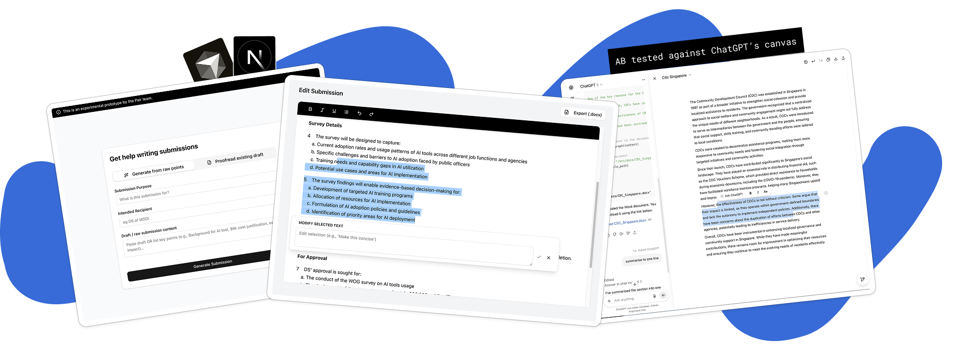 Officers loved Pair Chat for quick questions and brainstorming. But for core government work (submissions, speeches, reports, repeated admin tasks), chat fell short: prompting was hard, outputs were inconsistent, and context was lost between turns.